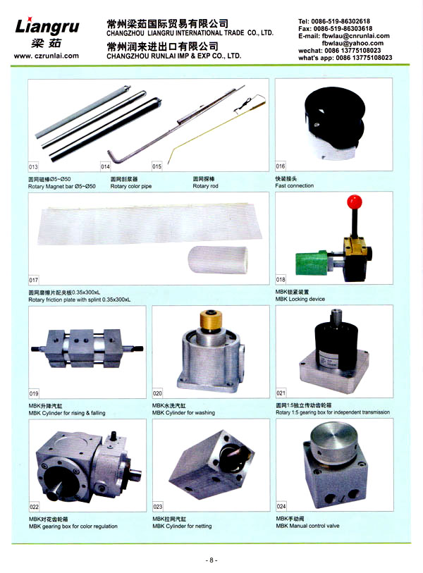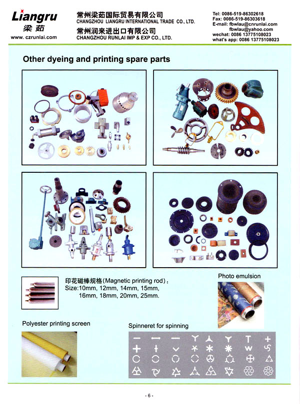 常州梁茹國際貿易有限公司是國內外雙用鋏,T型刮漿片,感光膠, 640軸承,剝邊器,阿托斯滑塊,印花用漿泵,針板座, 印花用圓網,印花圓筒網,華磁棒,針板,毛刷輪,定型機鏈條, 切布刀片的主要供應商 。我們公司位于常州市,臨近上海,交通十分便利。
