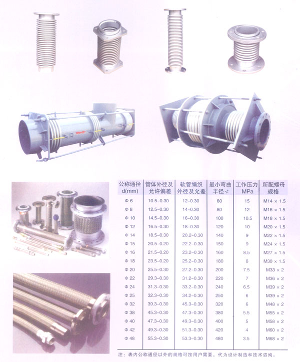 膨脹節(jié)和金屬軟管以金屬波紋管體作為柔性元件。它吸收變形及彎曲和振動的結(jié)構(gòu)零件,因其具有抗疲勞、耐高壓、耐高低溫、耐腐蝕、密閉性強、使用壽命長及綜合經(jīng)濟性能顯著等特點,廣泛應(yīng)用于石油化工、冶金、電力、航空航天、建筑、造船、碼頭、橡膠、造紙、紡織印染、醫(yī)藥、食品、交通運輸?shù)刃袠I(yè)。