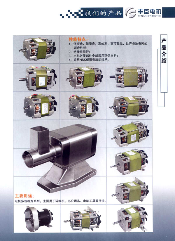 本公司在發(fā)揮傳統(tǒng)技術(shù)優(yōu)勢的基礎(chǔ)上,積極開展多方位的技術(shù)合作,協(xié)同常州市津盛辦公用品有限公司開發(fā)感應(yīng)電機(jī)產(chǎn)品市場。公司引進(jìn)國際上先進(jìn)的全自動浸漆生產(chǎn)線,產(chǎn)品生產(chǎn)自動化程度高,產(chǎn)品質(zhì)量穩(wěn)定可靠。電機(jī)表面有噴漆、涂塑等防腐處理,產(chǎn)品具美觀、耐腐蝕、安裝簡便等優(yōu)點(diǎn),廣泛應(yīng)用于辦公設(shè)備用品、電動工具等行業(yè)。