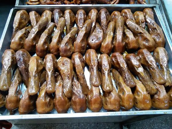 常州市武進區(qū)嘉澤蔣師傅鹵菜店經(jīng)營已有30多年,本產(chǎn)品采用祖?zhèn)髑旯欧郊右钥茖W(xué)營養(yǎng)的獨特鹵料配方、加入30多種名貴香料和中藥材秘制而成,達到色、香、味、形的俱加效果。做出來的產(chǎn)品不僅口感鮮美、香盈撲鼻、而且色澤誘人!肉感細(xì)膩、韌勁適度、有嚼勁、香辣入骨、不加塞牙縫,食用后具有特別的回味宇香,是極好的送禮佳品。
