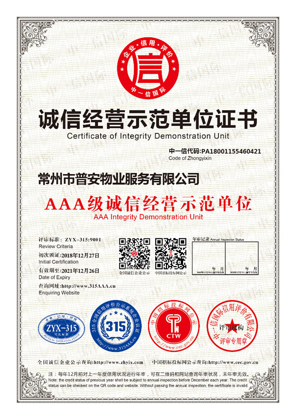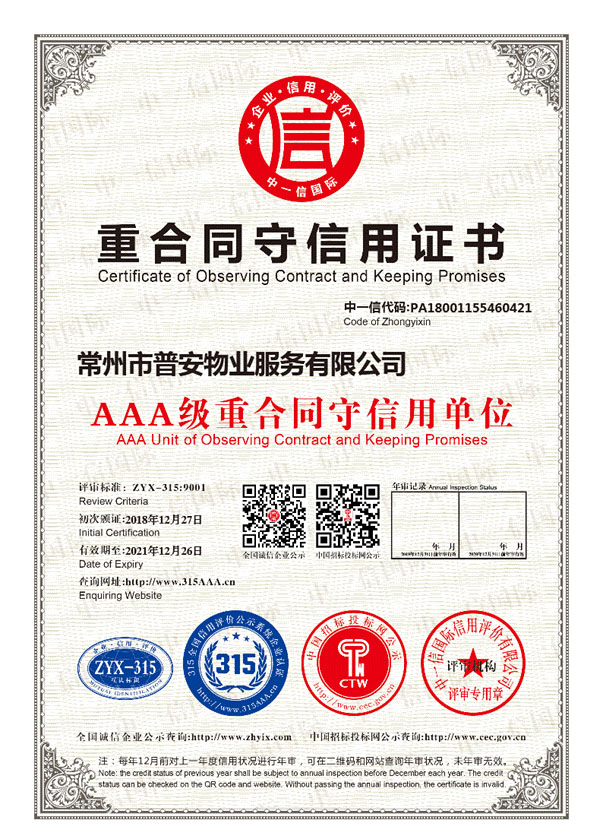 常州市普安物業(yè)服務(wù)有限公司成立于2014年6月,注冊資金500萬元人民幣,原公司名稱“常州市九合物業(yè)服務(wù)有限公司”具有國家三級物業(yè)服務(wù)資質(zhì)的物業(yè)管理服務(wù)企業(yè),公司本著“業(yè)主至上、服務(wù)第一,陽光服務(wù)、精品管理”的服務(wù)理念,精心打造具有普安物業(yè)特色的專業(yè)管理品牌。