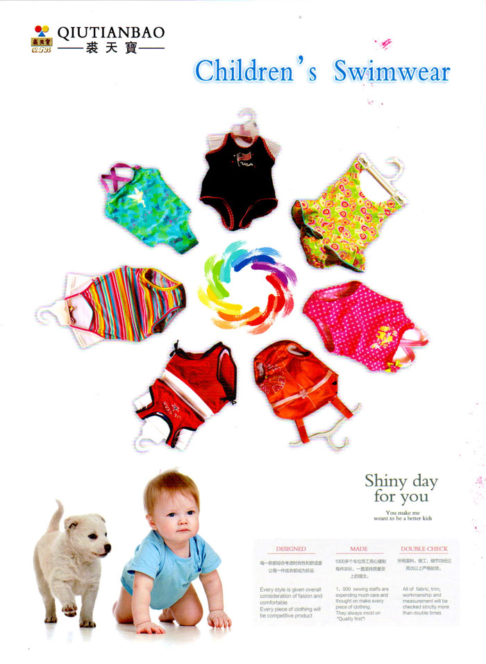 常州裘天寶服裝有限公司成立于2003年9月18曰,工廠占地面積12388平方米,廠房建筑面積24000余平方米,是一家集設(shè)計(jì)、制作、銷售、服務(wù)于一體的專業(yè)生產(chǎn)針織類童裝、泳裝等服裝的企業(yè)。其生產(chǎn)的產(chǎn)品遠(yuǎn)銷美國、歐洲、加拿大、澳大利亞等國家和地區(qū)。