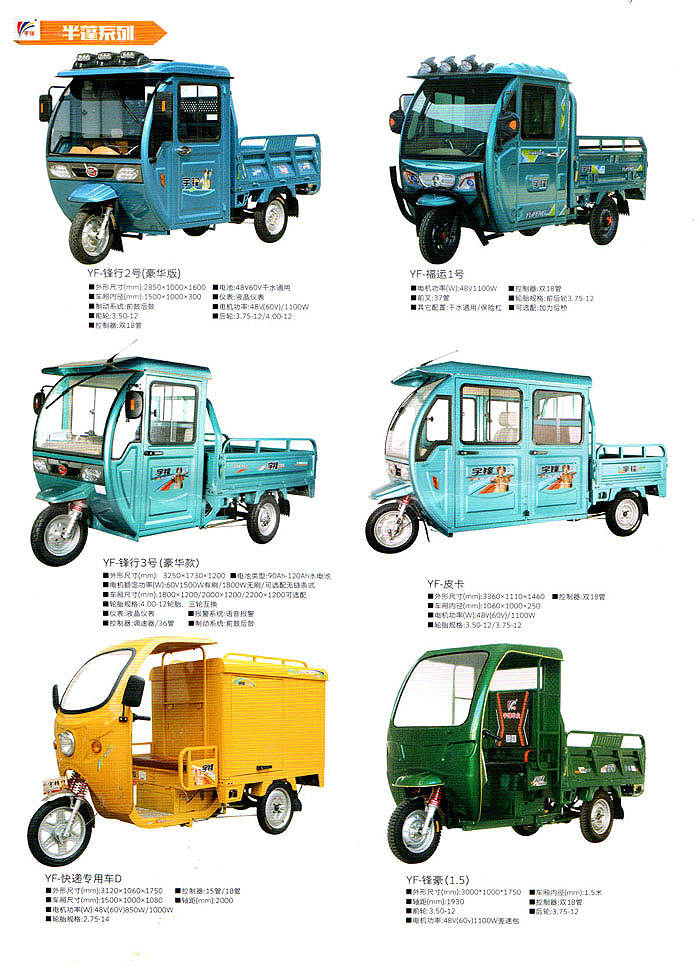 宇鋒車業(yè)創(chuàng)建于1995年,廠區(qū)面積10萬平方米,擁有專業(yè)技術(shù)人員100余名,是國內(nèi)領先的電動車研發(fā)與生產(chǎn)制造的廠家,也是專業(yè)從事研究、開發(fā)、制造電動車和新能源車的高新技術(shù)企業(yè)。 作為中國三輪車行業(yè)的開拓者,宇鋒擁有行業(yè)先進的機器人焊接線、自動化前處理線、自動化電泳噴涂和烘烤設備,公司擁有一流的整裝作業(yè)線,包括先進的沖擊、焊接、涂裝和總裝四大高品質(zhì)整車制造工藝設備,嚴格按汽車的標準來要求自己的產(chǎn)品。 宇鋒工廠各種檢測設備齊全,采用先進的生產(chǎn)工藝,高標準的質(zhì)量管理體系,產(chǎn)品質(zhì)量嚴格把控。已形成電動三輪車和新能源車的研發(fā)、制造、銷售和售后為一體的星級服務體系,堅持為消費者提供6S服務體系。 宇鋒產(chǎn)品擁有電動三輪車、新能源車和電動兩輪車等八大系列近百個型號品種,公司堅持自主研發(fā)自主制造,并順利通過ISO9001:2008質(zhì)量管理體系認證和ISO14001:2004國際環(huán)境管理體系認證。 宇鋒車業(yè)獲得工信部摩托車生產(chǎn)企業(yè)資質(zhì), 已有二十多款車型通過工信部目錄公告。宇鋒電動三輪車通過國家CCC認證,并由中國人民財產(chǎn)保險股份有限公司承保,有大合格證和車輛一致性證書,宇鋒電動三輪車上牌安全無憂! 在出口方面,宇鋒積極配合國家“一帶一路”政策的開展,在電動車行業(yè)里率先踐行走出去的戰(zhàn)略,依靠過硬的產(chǎn)品質(zhì)量和優(yōu)質(zhì)的服務,贏得了國外客戶的信賴和歡迎,2018年宇鋒車業(yè)在印度新德里建立制造工廠并良好運營,宇鋒產(chǎn)品遠銷印度、中亞、東南亞等二十多個國家,產(chǎn)品出口連續(xù)多年位居行業(yè)突出位置。