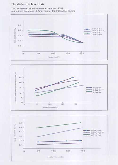 公司生產(chǎn)的CCAF-01型鋁基覆銅箔層壓板,熱阻為1.0℃/W,熱導(dǎo)率為1.0W/m·K;CCAF-04-A型鋁基覆銅箔層壓板,熱阻為0.65℃/W,熱導(dǎo)率為1.3~1.5W/m·K;CCAF-05型鋁基覆銅箔層壓板,熱阻為0.45℃/W,熱導(dǎo)率為2.0~2.2W/m·K,CCAF-06型鋁基覆銅箔層壓板,熱阻為:0.4℃/W,熱導(dǎo)率為2.5~2.8W/m·K。接近國際先進(jìn)水平,自主開發(fā)的散熱器基覆銅箔印制電路板層壓板,填補(bǔ)國內(nèi)空白。公司生產(chǎn)的鋁基覆銅箔板廣泛應(yīng)用于汽車點(diǎn)火器、摩托車調(diào)壓器、音箱模塊電源、通訊模塊電源、變頻模塊電源;各種大功率LED工程景觀照明:洗墻燈、投光燈、草坪燈、水底燈、噴泉燈、路燈、室內(nèi)照明、長1.2米LED照明燈、手電筒及液晶顯示器等。