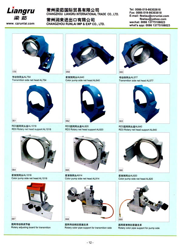 常州梁茹國際貿(mào)易有限公司是國內(nèi)外雙用鋏,T型刮漿片,感光膠, 640軸承,剝邊器,阿托斯滑塊,印花用漿泵,針板座, 印花用圓網(wǎng),印花圓筒網(wǎng),華磁棒,針板,毛刷輪,定型機(jī)鏈條, 切布刀片的主要供應(yīng)商 。我們公司位于常州市,臨近上海,交通十分便利。 我們注重產(chǎn)品質(zhì)量,價格優(yōu)惠,這是我們成功的原因所在,我司跟配套廠家緊密合作,不斷推出新產(chǎn)品,年銷售額逐年增加。我們的產(chǎn)品涉及化工、機(jī)械、紡織印染機(jī)械配件。我們熱忱歡迎國內(nèi)外客戶與我司洽談業(yè)務(wù),相信在我們的熱情服務(wù)之下能合作成功!