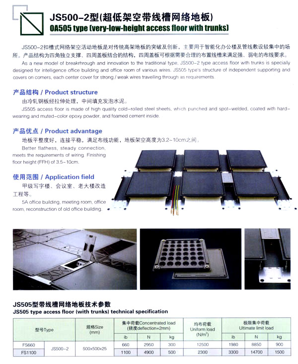 公司生產(chǎn)防靜電鋼質(zhì)、木質(zhì)機房地板和強化復(fù)合地板及各種電腦操作臺系列產(chǎn)品。該產(chǎn)品廣泛應(yīng)用于電子機房、通訊機房、各類實驗室和管線鋪設(shè)集中的防靜電場所以及家庭、大型商場的裝飾。公司技術(shù)力量雄厚、管理科學(xué),已具有設(shè)計、開發(fā)、市場營銷及售后服務(wù)的專業(yè)人才隊伍。