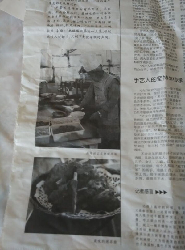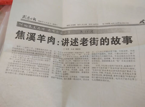 焦溪羊肉遠(yuǎn)近聞名,然而,食客中鮮有關(guān)注焦溪羊肉之加工鏈的。如今,焦溪的羊肉經(jīng)營(yíng),從活羊采購(gòu),到屠宰、分割、羊雜處理、烹飪、上桌,其分工已經(jīng)細(xì)化。在焦溪從事活羊屠宰的,多數(shù)是江陰南閘人。宰殺后去頭的肥羊,個(gè)頭不亞于百斤開外的優(yōu)質(zhì)肉豬,皮色白凈、肉質(zhì)鮮亮,經(jīng)過精心的烹飪,最終成為道道佳肴。