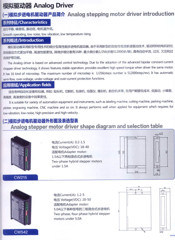 常州創(chuàng)偉電機(jī)電器有限公司成立于1995年,是一家專業(yè)從事步進(jìn)電機(jī)及驅(qū)動(dòng)控制生產(chǎn)、研發(fā)的企業(yè),F(xiàn)已擁有一批富有經(jīng)驗(yàn)的生產(chǎn)和開(kāi)發(fā)隊(duì)伍。企業(yè)在多年的發(fā)展過(guò)程中,為全國(guó)各地各行業(yè)提供了大量質(zhì)優(yōu)價(jià)廉的步進(jìn)電機(jī)及控制產(chǎn)品。應(yīng)用領(lǐng)域涉及機(jī)器人、音樂(lè)噴泉、數(shù)控機(jī)床設(shè)備、工業(yè)電子自動(dòng)化設(shè)備、醫(yī)療器械、廣告器材、舞臺(tái)燈光設(shè)備、印刷設(shè)備、紡織機(jī)械、計(jì)算機(jī)外部應(yīng)用設(shè)備等等。 公司產(chǎn)品先后通過(guò)ISO9001質(zhì)量管理體系認(rèn)證,RoHS認(rèn)證,CE認(rèn)證。公司現(xiàn)擁有全自動(dòng)繞線機(jī)、調(diào)壓式充磁機(jī)、萬(wàn)能外圓磨床、數(shù)控機(jī)床等設(shè)備50余臺(tái),固定資產(chǎn)3000萬(wàn)元,員工總數(shù)200余人,其中技術(shù)人員25人。年生產(chǎn)各類電機(jī)100萬(wàn)臺(tái)。依靠齊全的檢測(cè)設(shè)備、完善的檢測(cè)手段、嚴(yán)格的質(zhì)量標(biāo)準(zhǔn),我們一直致力于提高產(chǎn)品的質(zhì)量和性能。對(duì)于每一個(gè)客戶我們都提供自始自終的技術(shù)服務(wù)和產(chǎn)品售后服務(wù)。 我公司的主要產(chǎn)品有20BH系列、28BH系列、35BH系列、39BH系列、42BH系列、42BHH系列、57BH圓形系列、57BHH方形系列、60BHH方形系列、86BH圓形系列、86BHH方形系列,以及110BHH系列的四相(二相)混合式步進(jìn)電。CW60BL、CW63BL、CW70BL、CW92BL系列無(wú)刷電機(jī)也相繼上市。另外步進(jìn)電機(jī)驅(qū)動(dòng)器CW215、CW230、CW5045、CW8060、CW6060AC、CW1108以及全新數(shù)字式驅(qū)動(dòng)器CWD230、CWD556、CWD860H、CW2M2208、CW3M2208和閉環(huán)電機(jī)驅(qū)動(dòng)器CWDS556,CWDS660,CWDS860H,CWDS880L,CWDS1108,CWDS2206等系列也暢銷全球。另外本公司也可對(duì)外承接各種步進(jìn)電機(jī)及相關(guān)工控系統(tǒng)的應(yīng)用系統(tǒng)工程。 熱忱歡迎國(guó)內(nèi)外客商前來(lái)洽談及合作。
