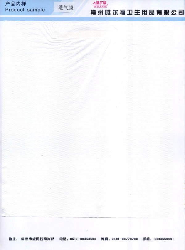 常州唯爾福衛(wèi)生用品有限公司是一家獨(dú)資企業(yè),地處滬寧高速、沿江高速,常州橫山出口交匯處,交通便利、環(huán)境清新。 常州唯爾福衛(wèi)生用品有限公司創(chuàng)建于1998年,公司占地2.5萬(wàn)平方米,員工165人。 公司現(xiàn)有各類生產(chǎn)線20條。公司現(xiàn)已發(fā)展成為各項(xiàng)管理先進(jìn)、技術(shù)力量雄厚,全年流延膜產(chǎn)量9000噸,華東地區(qū)最具規(guī);牧餮幽どa(chǎn)基地。 公司專業(yè)生產(chǎn)9—80克流延膜,15—80克透氣膜,及各類印刷膜。優(yōu)極柔版印刷,各種復(fù)合膜。廣泛適用于婦女衛(wèi)生用品、嬰兒紙尿褲、成人紙尿褲、成人床墊、寵物墊、醫(yī)用薄膜制品等領(lǐng)域。多年來公司致力于研究和開發(fā)適應(yīng)市場(chǎng)需求的新產(chǎn)品來滿足廣大客戶的需求。