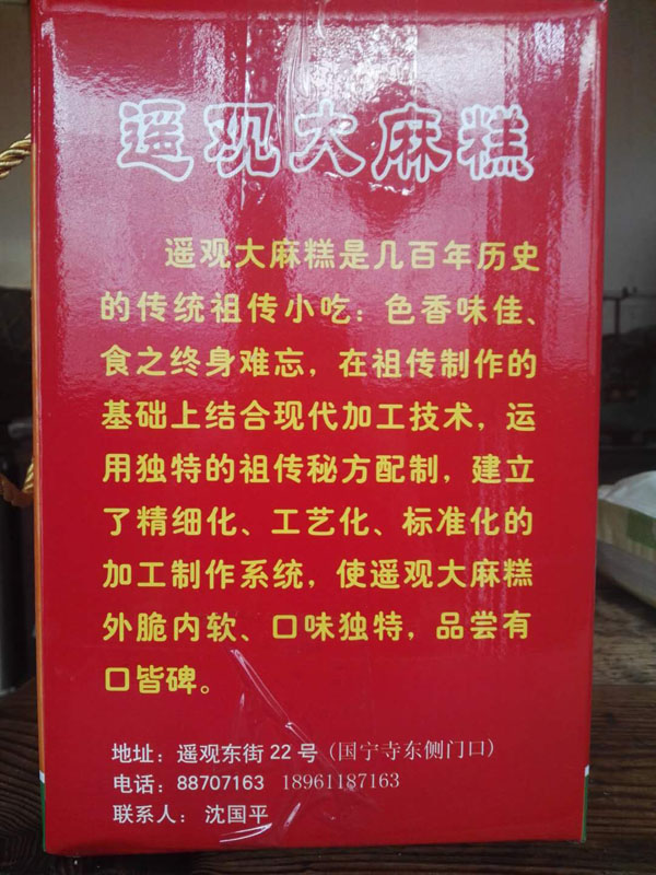 沈正昌麻糕店位于遙觀鎮(zhèn)東街、國寧寺旁,雖然店門口連個(gè)招牌都沒有,卻不妨礙四面八方的食客慕名而來,大伙看中的正是這些純手工制作,原汁原味的大麻糕。如今的店主沈國平已經(jīng)是沈家第四代做麻糕的傳人了。