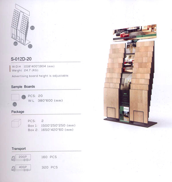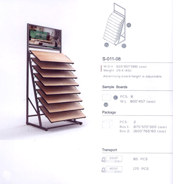 常州市筑友展示器材有限公司展示坐落于世界聞名的地板生產基地-橫林鎮(zhèn),專業(yè)生產全套地面材料展示道具。主要產品為地板,地毯或地磚的展板,串板,木質展架及金屬展架。