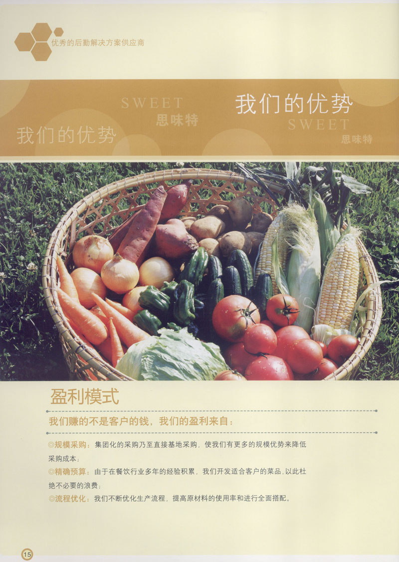 常州市思味特餐飲有限公司是一家專業(yè)從事企事業(yè)后勤服務(wù)的有限責(zé)任公司,公司從承包食堂起步,逐漸發(fā)展為經(jīng)營團(tuán)膳承包、營養(yǎng)送餐、生活區(qū)管理、連鎖餐廳的綜合型企業(yè)。2008年公司斥資100萬元,在常州興建了可以同時(shí)提供3000餐膳食的中央廚房,重點(diǎn)打造“和美客”后勤服務(wù)品牌,全力為企事業(yè)單位解決后勤后顧之憂。