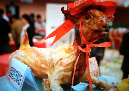 張萬(wàn)成羊莊一家綜合性的公司,下設(shè)酒店,羊產(chǎn)品加工廠,屠宰廠,山羊養(yǎng)殖場(chǎng)。 酒店位于常州西夏墅浦河村,酒店羊宴規(guī)模占地30畝,酒店主要經(jīng)營(yíng)特色全羊宴。 一個(gè)祖?zhèn)鞯臍⒀虼髴,傳到張萬(wàn)成,已是第六代了。張家的羊肉,素來(lái)以肉質(zhì)鮮美著稱,張萬(wàn)成羊莊的主人張建龍是第六代傳人,張家的羊肉素來(lái)以肉質(zhì)鮮美著稱,從常州新北區(qū)沿黃河西路往機(jī)場(chǎng)方向直行至羅溪右轉(zhuǎn),穿過(guò)滬寧高速高架橋后不遠(yuǎn)處左拐沿翠屏湖路直走便能看到張萬(wàn)成羊莊,酒店上下共有三層,2000多平方米經(jīng)營(yíng)面積,能同時(shí)接待近30桌客人的規(guī)模。有自己的羊圈和屠宰場(chǎng),每天殺20多只,菜式近100道。光是原料,就從原來(lái)羊身上的幾個(gè)主要部位,增加到除了羊牙齒以外的一只整羊全部可以入菜。烹制方式,更是在本土單一的燒、炒、煮基礎(chǔ)上,借鑒了東北、廣東、四川等地的烹羊特色,增加了蒸、涮、烤、煎、炸等多種方式。 注重原汁原味的冷菜 白切羊肉:精選羊頸部的活肉精制而成,肥瘦適中,絲毫沒(méi)有一般羊肉的膻味,沾少許張萬(wàn)成羊莊秘制的醬料,口感非常好。 美味羊舌:張家的羊舌感覺(jué)是用特殊的醬料腌制過(guò)的,咸中略有甜味,口感鮮嫩卻肥而不膩,味道很香。 除了白切羊肉和羊舌以外還有許多冷菜品種,如羊肚、羊心、羊耳朵等。。 火候控制精準(zhǔn)的炒菜 炒羊肝:地道的農(nóng)家風(fēng)味,與大蒜葉同炒,蒜香濃郁,羊肝鮮嫩,這羊肝可是火候菜,羊肝鮮嫩與否不但取決于廚師對(duì)火候的掌握,還在于上桌放置時(shí)間的長(zhǎng)短,所以羊肝上桌后要盡快食用,看羊肝是否鮮嫩,只需用筷子挑起并輕輕抖動(dòng),有彈性者為佳。 美味羊?qū)殻阂跃曼S、鮑味菇爆炒的羊?qū)殻f(shuō)是滋補(bǔ)壯陽(yáng)的一道金貴菜,配料講究的燒菜系列 宮廷燴羊肚:較為金貴的菜品,配菜貴于主料,是以名貴的素鮑和新鮮的筍絲與羊肚同煮,口感濃郁,營(yíng)養(yǎng)豐富。 海參白燒羊肉:將取自7個(gè)月大羔羊身上的帶皮腿肉與海參一同煨煮,菜肴美容滋補(bǔ),兩種鮮味互相補(bǔ)益達(dá)到完美交融狀態(tài),口感甚佳。 魚羊鮮:新鮮的青魚配上羊肉,既有本地羊肉的肥嫩,又有魚肉的鮮香,鮮!鮮!古代人造字就是有道理!”店里可以根據(jù)客人的需要配以魚回魚、鯰魚、鱖魚等。 特色的羊宴點(diǎn)心 羊肉餛飩:羊莊老板自創(chuàng)的羊宴點(diǎn)心,看似普通的油燜跑蛋卻另有乾坤,將蛋掀開(kāi)便能看見(jiàn)藏于其中的羊肉菜餡餛飩,菜和肉都是自家新鮮的原料,很好吃。 手工搟面:不知道是因?yàn)槊媸钦嬲檬止{制還是因?yàn)榧尤肓缩r味十足的羊湯,總之味道非常好,面勁道,湯也鮮美! 張萬(wàn)成羊莊的羊湯也是遠(yuǎn)近聞名,因?yàn)槭亲鎮(zhèn)鞯氖炙嚕龀鰜?lái)的羊湯不腥不膻,香醇不膩,味道十分鮮美,加入粉絲或者面條更是難得的美味。
